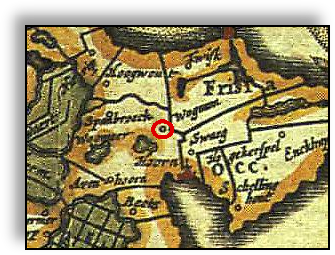 Wognum on a portion of Janssonius’ 1658 map of the Netherlands. West Friesland is marked "Frisia Occ."3 |